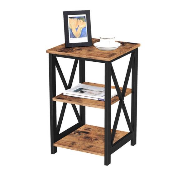 Never underestimate the beauty of details. This side table has an X-shaped design on both sides for a winsome charm, a matte black metal frame, and 3 engineered wood shelves finished in warm rustic brown tones. See? Beauty in detail.